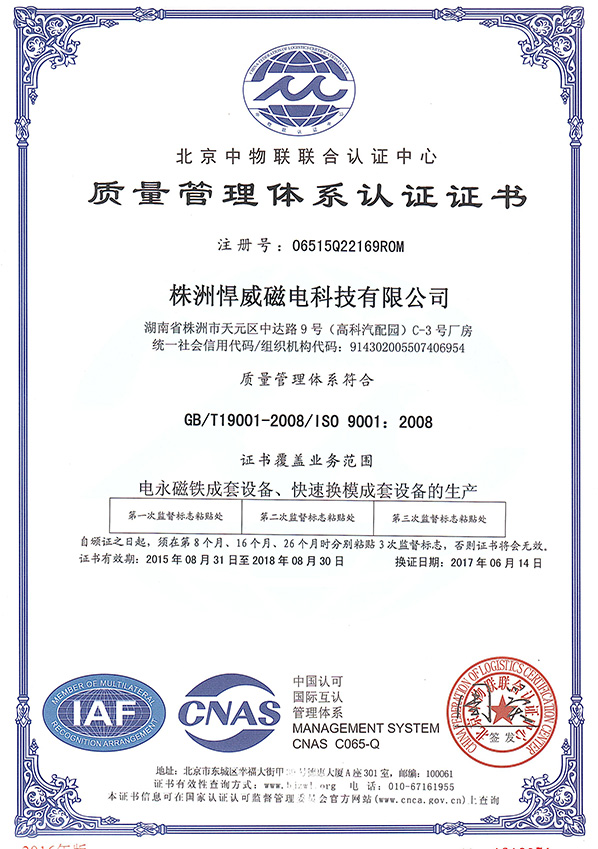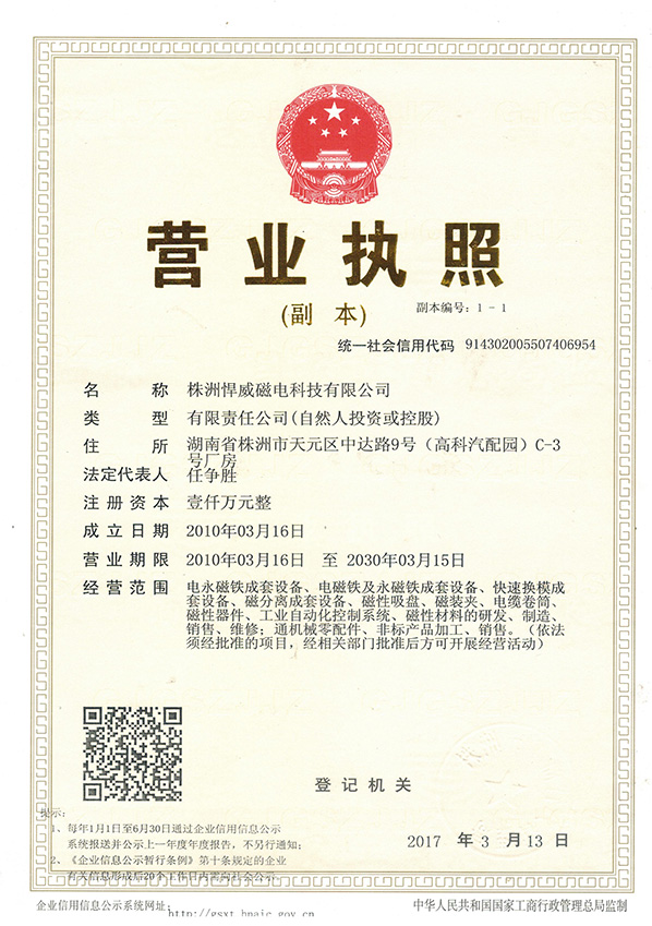 悍威磁電是國(guó)內(nèi)一家高新技術(shù)企業(yè),10年潛心鉆研先后獲得6項(xiàng)發(fā)明專利,30項(xiàng)實(shí)用新型專利,研發(fā)的電永磁產(chǎn)品具有“安全、節(jié)能、高效、環(huán)?!钡泉?dú)特優(yōu)勢(shì),適用廣泛,遠(yuǎn)銷(xiāo)海外成為全球值得信賴的工業(yè)磁性設(shè)備供應(yīng)商之一。