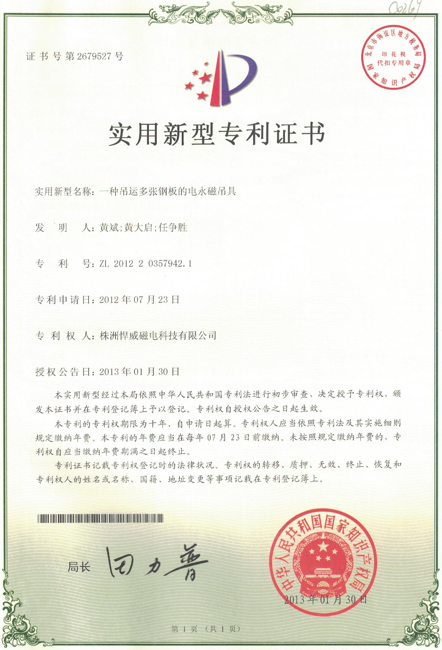 成功研制國(guó)內(nèi)首套吊多張鋼板起重電永磁鐵,應(yīng)用于江蘇某造船廠;
