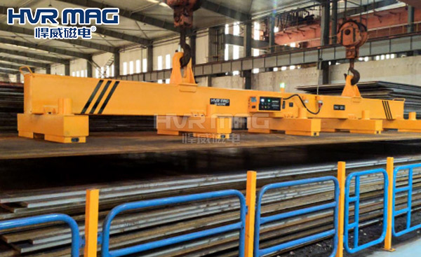 悍威磁電的這套20噸中厚鋼板專用電永磁吊具由多套電永磁鐵、歐式梁及電控系統(tǒng)構(gòu)成。這三大重要結(jié)構(gòu)造就了悍威電永磁吊具安全節(jié)能、穩(wěn)定可靠、便捷的特色。