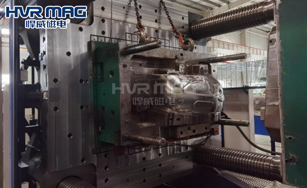 據(jù)了解,我們的客戶是一家專業(yè)為汽車工業(yè)提供保險杠等注塑制品的企業(yè),該客戶以前使用螺栓固定汽車保險杠、汽車門板框等汽車專用模具,但每次在換模時,總是需要利用人工將一個個螺栓擰緊,以此固定模具,換一次模具,不僅費時費力,而且嚴重影響整個注塑機的生產(chǎn)加工效率。為了徹底解決注塑機換模難的問題,提高注塑機的生產(chǎn)加工產(chǎn)能,該客戶引進了悍威磁電的磁力快速換模系統(tǒng)。