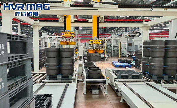 磁力抓手具有小巧靈活、夾吸力強(qiáng)大、操作簡單、安全可靠等優(yōu)點(diǎn),它可以配合機(jī)器人、桁架、焊接變位機(jī)等自動(dòng)化設(shè)備工裝,解決傳統(tǒng)夾具結(jié)構(gòu)復(fù)雜、占用空間。布局定位不準(zhǔn)、工件掉落損傷等問題,那么關(guān)于汽車輪轂自動(dòng)化生產(chǎn)線,能不能使用磁力抓手進(jìn)行搬運(yùn)呢?