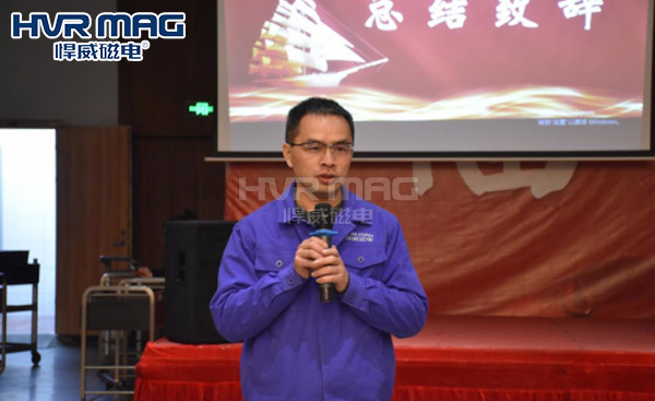 最后,悍威磁電總經(jīng)理任爭勝先生發(fā)表總結(jié)致辭,他講述了自己創(chuàng)業(yè)的初衷和經(jīng)歷,勉勵悍威人在今后的工作中堅持不懈,將悍威產(chǎn)品打造成為“金字招牌”,共同實現(xiàn)美好的“悍威夢”。