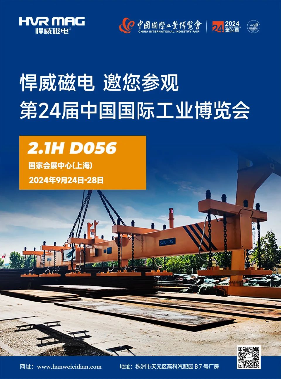 第24屆中國國際工業(yè)博覽會將于2024年9月24日-28日在國家會展中心(上海)舉行。悍威磁電將攜最新的科技成果亮相。我們誠邀您共赴這場科技與工業(yè)交織的盛會,一同感受智能制造的變革力量。
