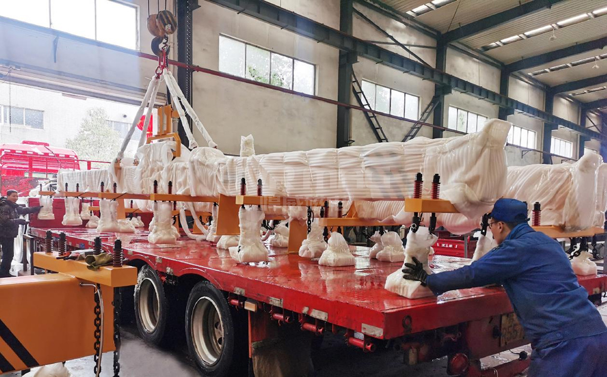 發(fā)貨現(xiàn)場,悍威人鉚足干勁,精神抖擻,齊心協(xié)力地將一套套電永磁吊具整齊有序地碼放在貨車上并進(jìn)行固定,確保發(fā)貨一路順利。