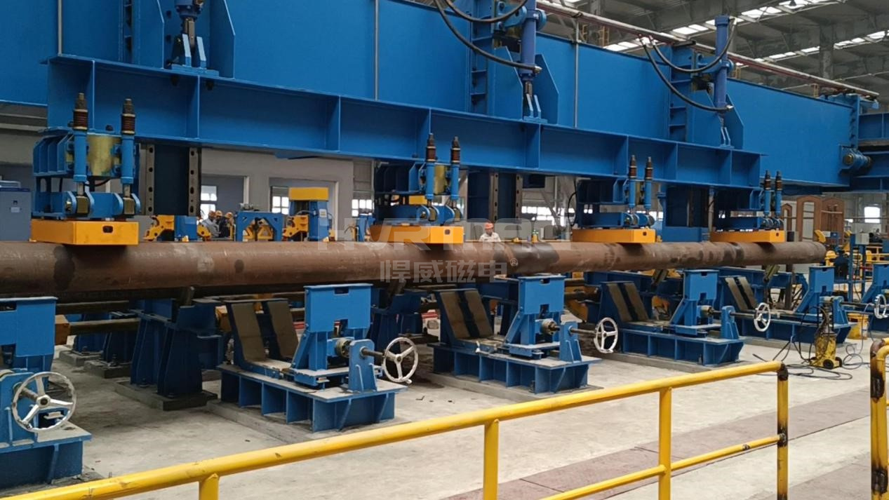 電永磁鐵不僅可以搭配行車實(shí)現(xiàn)輕松吊運(yùn)鋼板等導(dǎo)磁性材料,還可與桁架自動(dòng)化生產(chǎn)線融合,實(shí)現(xiàn)安全高效的自動(dòng)化搬運(yùn)大型鋼管。