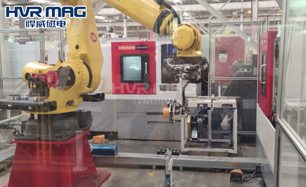 電永磁鐵配合智能機(jī)器人為CNC 加工中心自動(dòng)化上下料