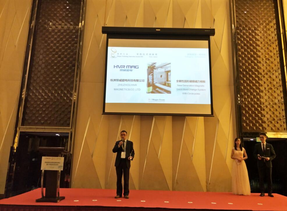 悍威磁電研發(fā)生產(chǎn)的磁力快速換模系統(tǒng),榮獲2018塑料行業(yè)榮格技術(shù)創(chuàng)新獎(jiǎng)!在此次頒獎(jiǎng)盛典上悍威磁電向業(yè)界介紹磁力快速換模系統(tǒng),助力塑料工業(yè)4.0!
