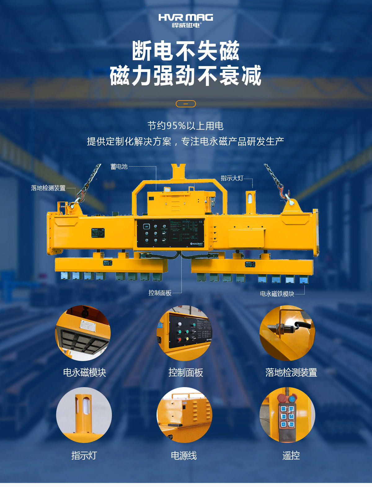 單張多張都可以,悍威磁電電永磁吊具有不同的型號,對應(yīng)不同的起吊需求