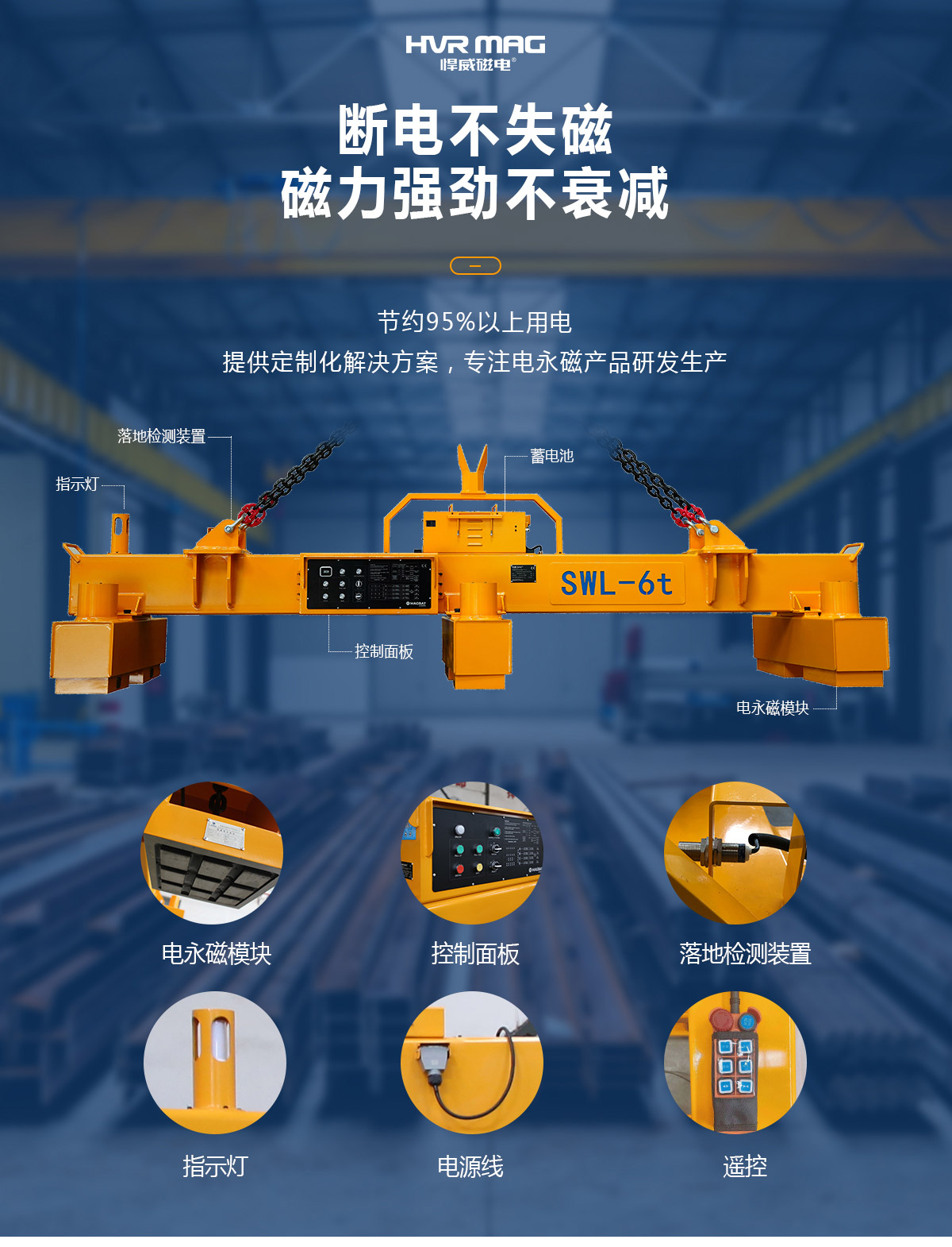 5m單張鋼板)設(shè)計,采用多臺電永磁鐵聯(lián)吊。其具有多檔調(diào)磁功能,精準(zhǔn)控制吊具透磁深度,可確保完全不粘連下一張鋼板,大幅提高鋼板吊運效率?" />