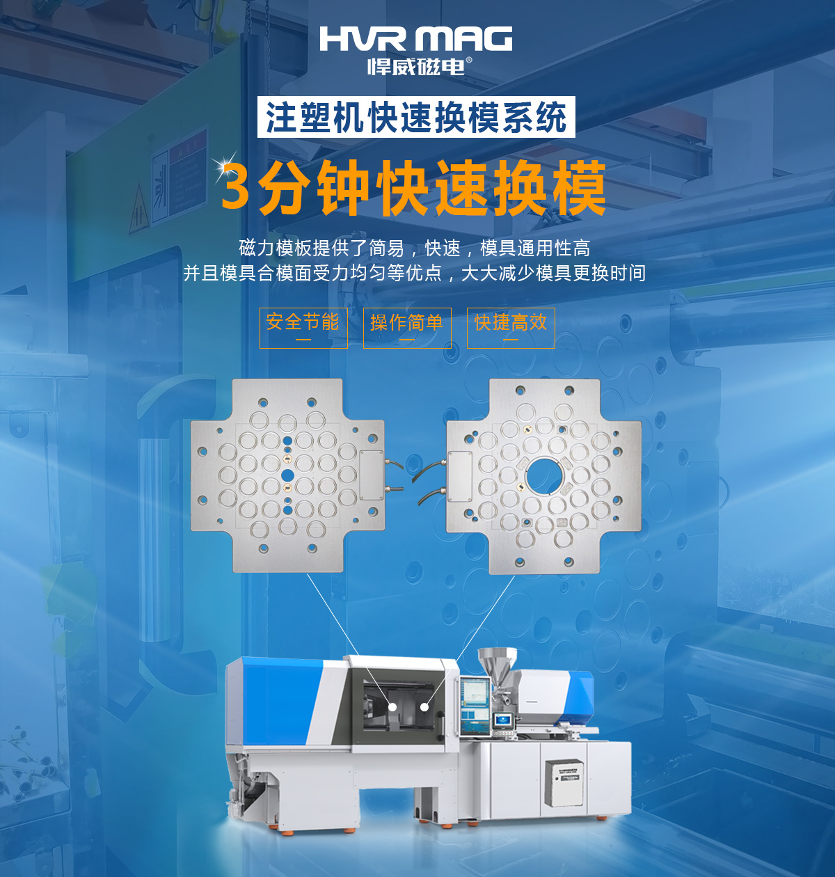通常,電永磁快速換模系統(tǒng)更換模具只需要3分鐘,而更換大型模具的時間從2小時減少到10分鐘