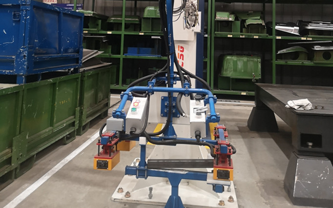 下圖是悍威磁電電永磁磁力抓手在自動化工程機(jī)械行業(yè)的最新應(yīng)用,機(jī)械臂磁力抓手,用來搬運體積大重達(dá)50公斤的框架類鋼件。