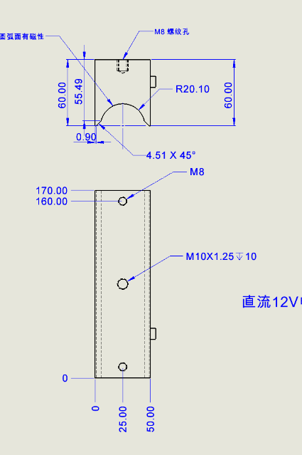 一客戶采用電磁鐵去吸附一根直徑40mm的小圓棒,下方有50KG的負(fù)載,現(xiàn)在他們吸不住,問我們電永磁鐵有沒有辦法。
