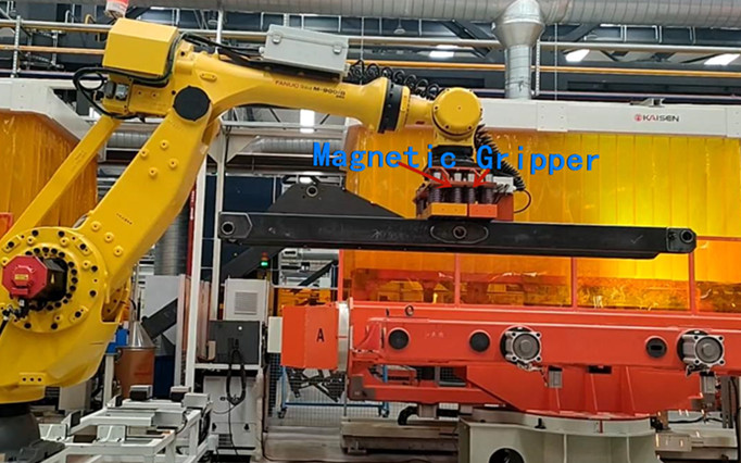 悍威磁電的磁性抓取解決方案,用于自動(dòng)焊接生產(chǎn)線中的拾取和放置機(jī)器人,由兩部分組成,在以下各部分中分別列出。
