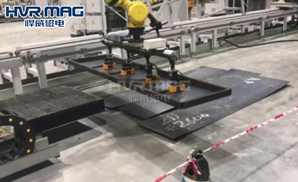 在智能制造、自動化產線這些場景中,搬運小型鋼板是很常見的一種工況。那我們如何保證安全又高效的搬運作業(yè)呢?訣竅就在選擇正確的桁架機械手末端夾具。毫無疑問,電永磁夾具在搬運鋼板這種工況百分之百是最佳選擇。因為他有強大的兼容性,并且有用斷電不失磁的特點。僅在0.2-3秒內就能完成充退磁工作。一臺電永磁夾具就能滿足您所有需求。