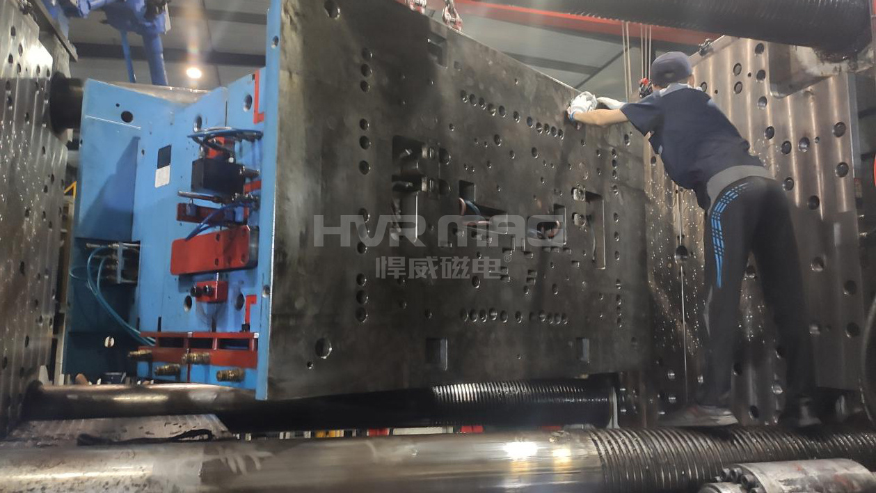 磁力快速換模完成后,機(jī)器注塑成型件